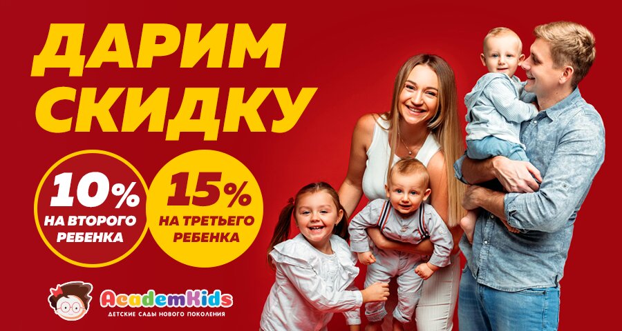 Скидка на второго и третьего ребенка до 15%